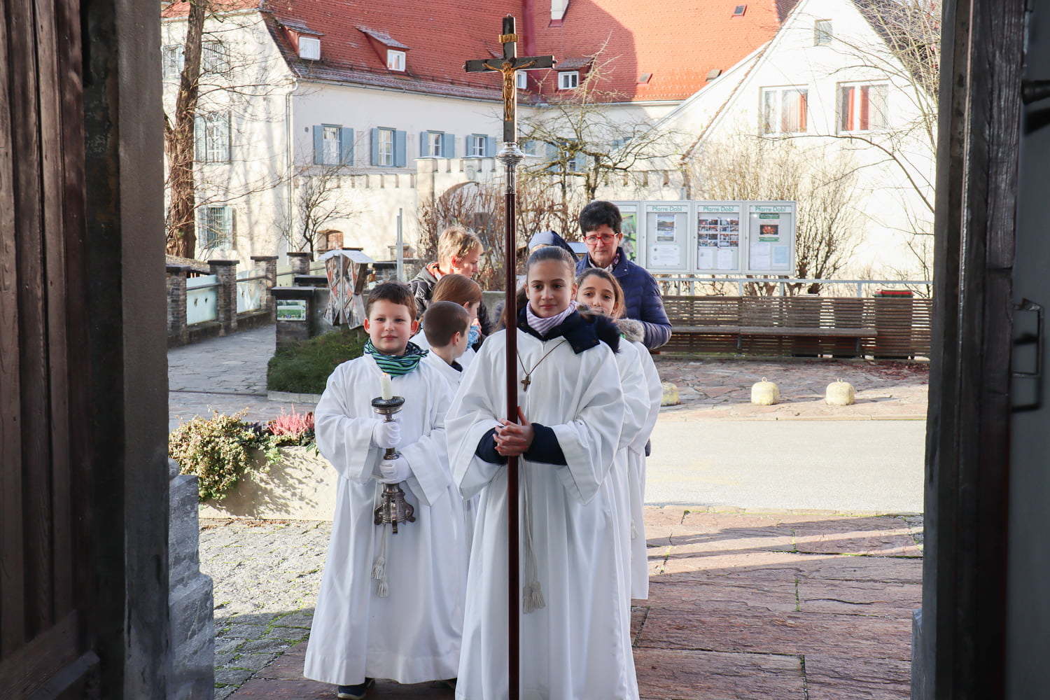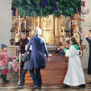 In der Wortgottesfeier ist mehr Raum für neue Elemente. So tanzte Barbara Koren mit einigen Frauen und Kindern den Tanz „Samen der Liebe“. Gebet ist nicht nur reden, singen, still sein … sondern auch mit Leib und Seele, mit dem ganzen Körper meinen Glauben zum Ausdruck zu bringen. Vor dem Segen zeigten die Kinder mit einer symbolischen Handlung – das Aufblühen „einer Blüte“ mit Seidentüchern – was es bedeutet, füreinander zum Segen zu werden.