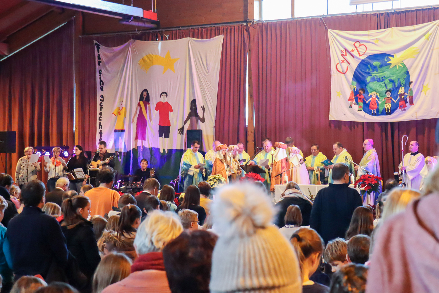 Nach dem traditionellen Würstlessen animierte eine Band die Kinder zum Mitsingen und Mittanzen. Währenddessen stand unser Bischof wieder für Selfies und Gruppenfotos zur Verfügung.