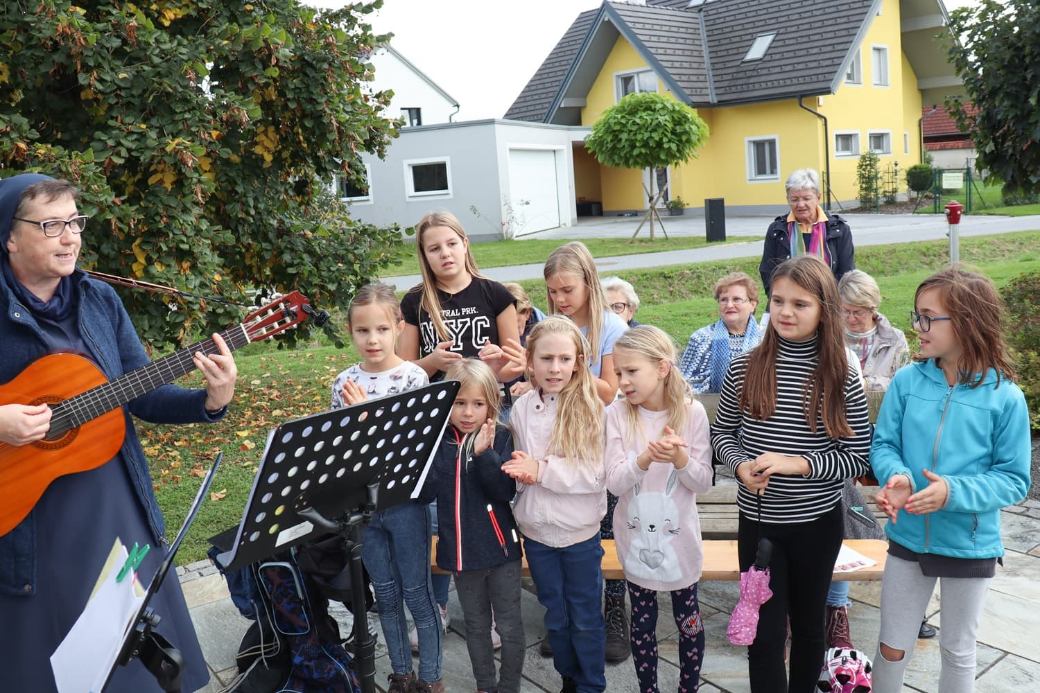 Die Familienwallfahrt führte diesmal von der Pfarrkirche nach Dobl-Dorf – aber nicht direkt. Mit einigen Stationen führte der Weg über den Oberberg durch den Kaiserwald nach Dobl-Dorf. Dort feierten wir dann eine Wortgottesfeier, nach welcher wir noch auf eine Jause eingeladen wurden.