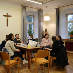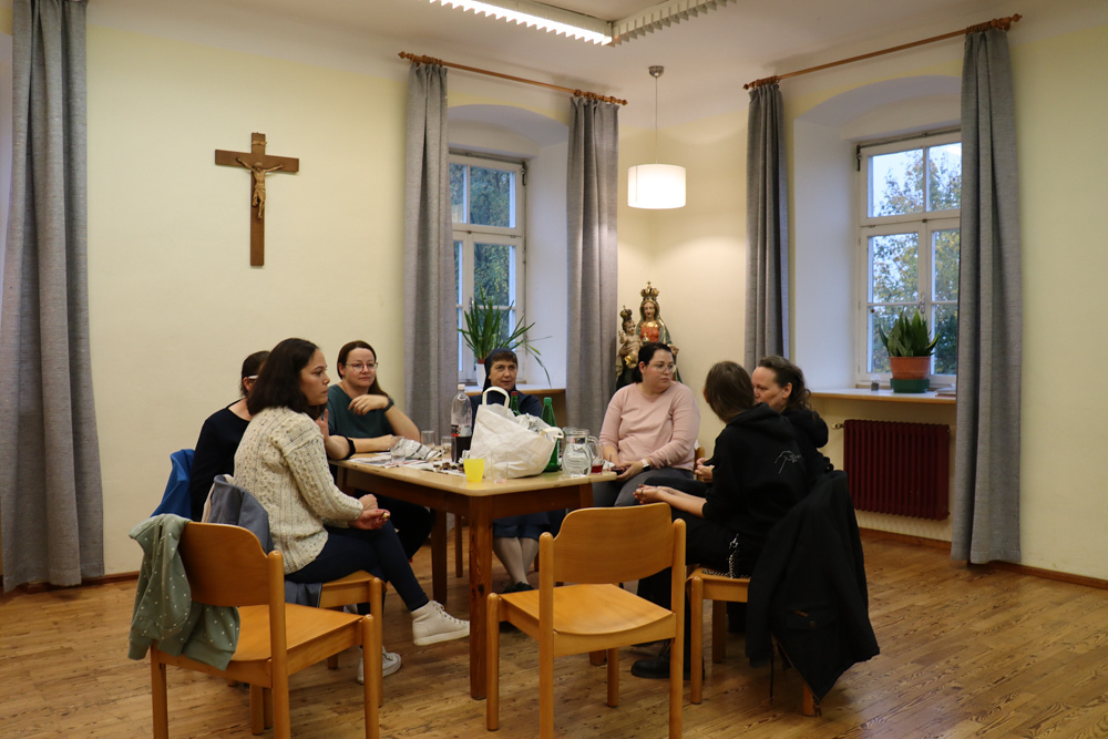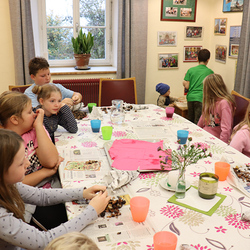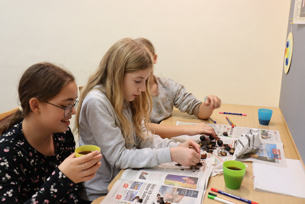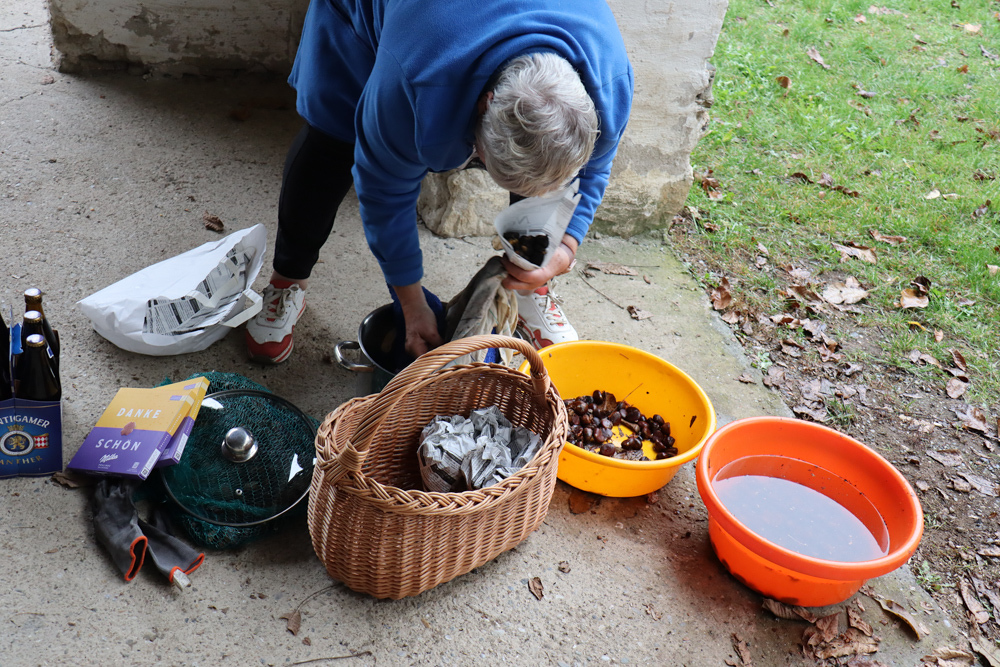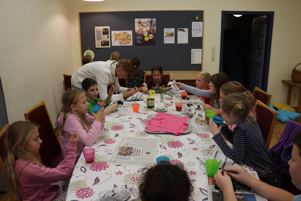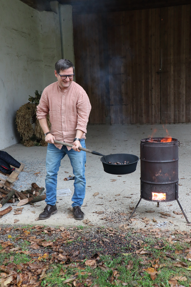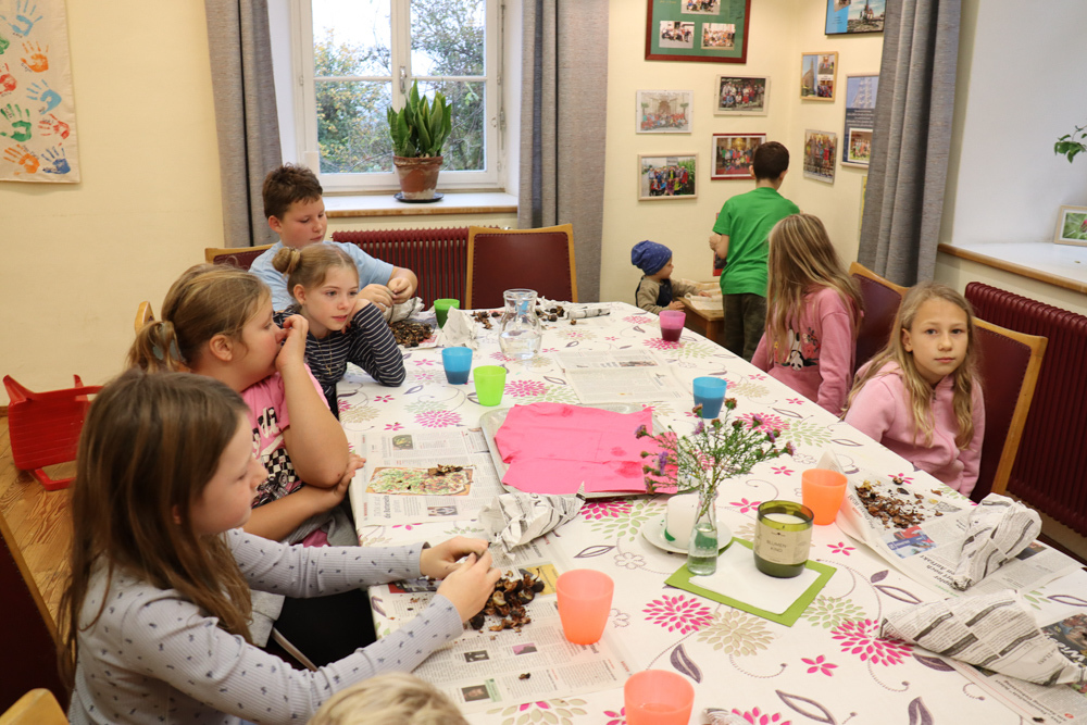 Anschließend trafen sich alle wieder im Pfarrhof, um gemeinsam Kastanien und Traubensaft zu genießen. Auch einige Eltern stießen dazu und unterhielten sich bei Kastanien und Sturm.
