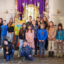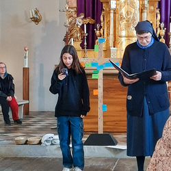 An jedem Freitag um 15:00 Uhr läuten die Kirchenglocken. Aber warum? Weil wir an das Leiden und Sterben Jesu denken. Wir danken ihm, dass er für uns den letzten und schwersten Weg gegangen ist. Daran erinnern uns die 14 Kreuzwegbilder in der Kirche.