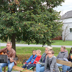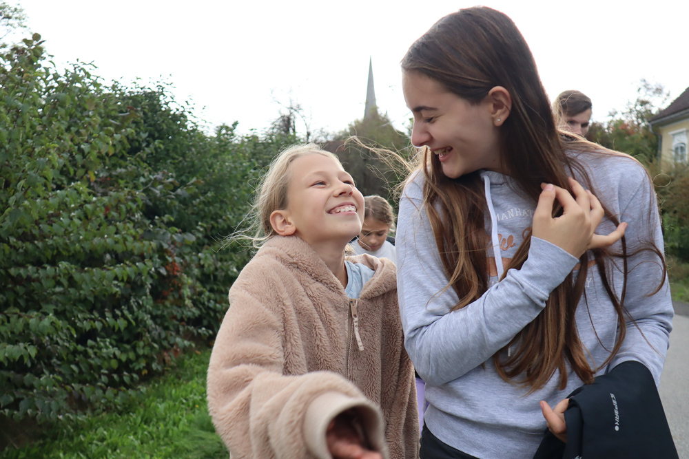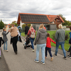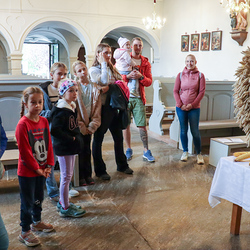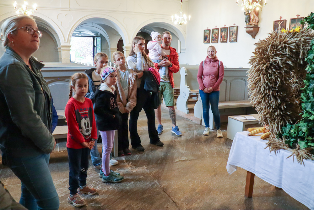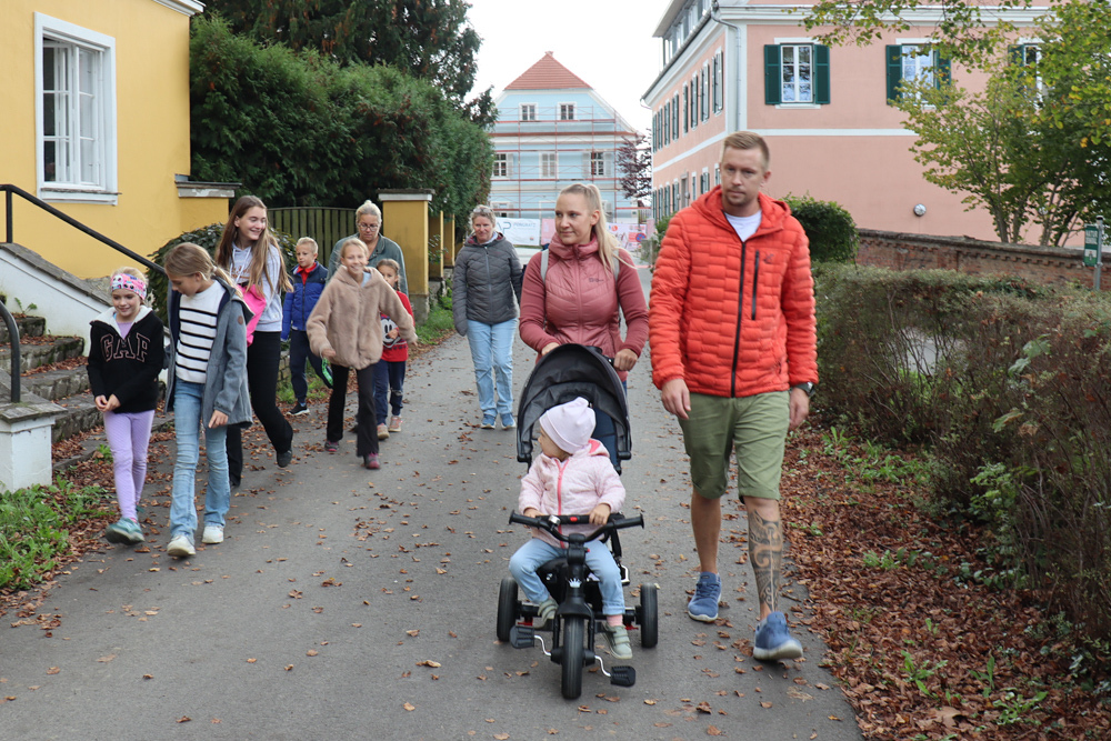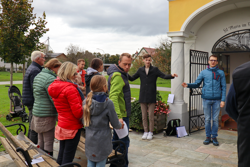 Auch wenn die Sonne am Samstag, 5. Oktober 2024, nicht so kräftig strahlte, trafen sich doch ein paar Kinder und Familien bei der Pfarrkirche zur Familienwallfahrt. Gemeinsam versammelten wir uns in der Kirche rund um die Erntekrone. Wir wurden eingeladen, bei der Wallfahrt besonders auf unsere Sinne zu achten, was wir am Weg sehen, riechen und hören, und Gott Danke zu sagen, für all die schönen Dinge.