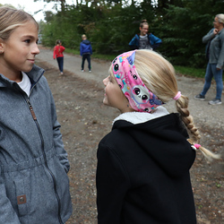 Auf dem Weg über den Wald zur Dobl-Dorf-Kapelle machten wir zwei Mal Halt, um genau auf unsere Sinne zu achten: Was sehen wir? Was hören wir? Was riechen wir?