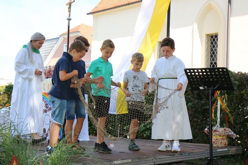 Am Sonntag, 27. Juni feierte die Dobler Jungschar eine Wort-Gottes-Feier auf der Dobler Pfarrwiese. Geleitet wurde der Gottesdienst von Pastoralreferentin Ines Kvar und Pastoralpraktikantin Anja Asel.