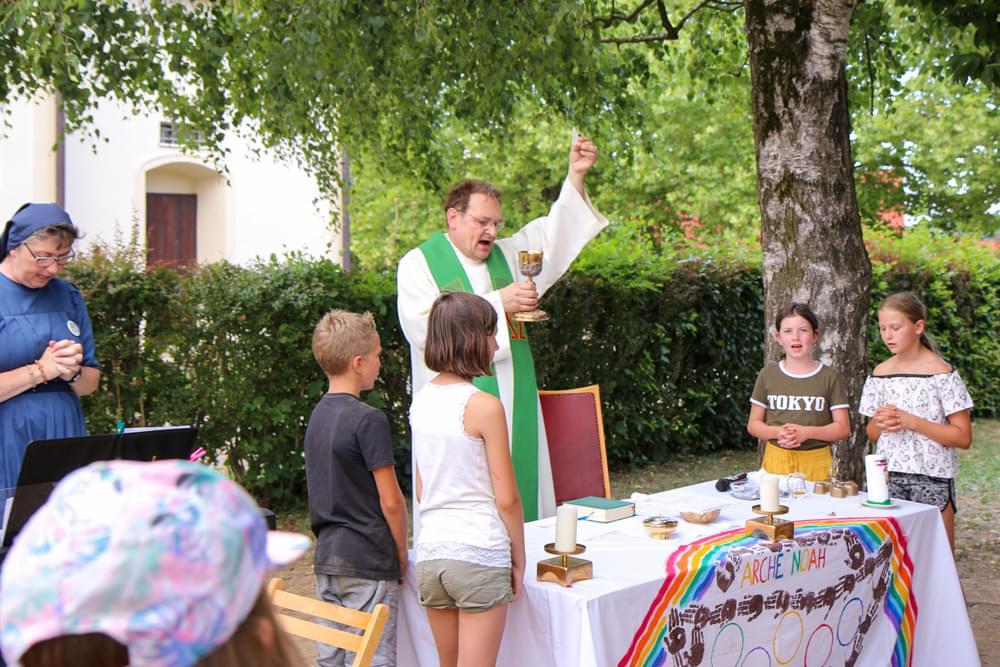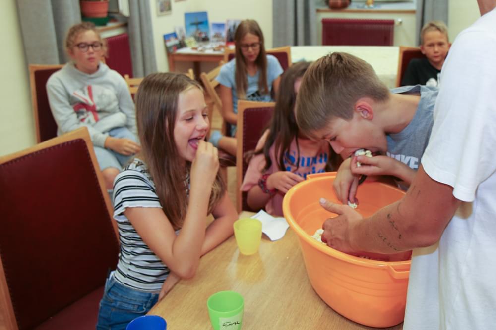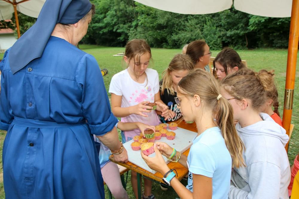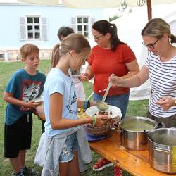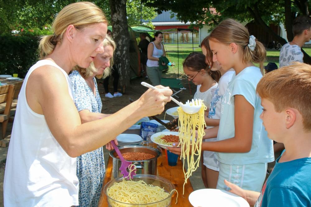 Bei dem vielen Programm bekommt man ordentlich Hunger. Zum Glück hatten wir eine tolle Köchin, Frau Maria Kainz, die so gut für uns gekocht hat! Am letzten Tag haben wir einen Abschlussgottesdienst auf der Pfarrwiese gefeiert. Dabei haben wir eine Geschichte aus der Bibel nachgespielt. Wir hatten sehr viel Spaß und es waren tolle gemeinsame Tage!