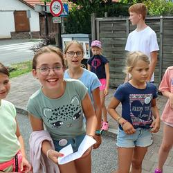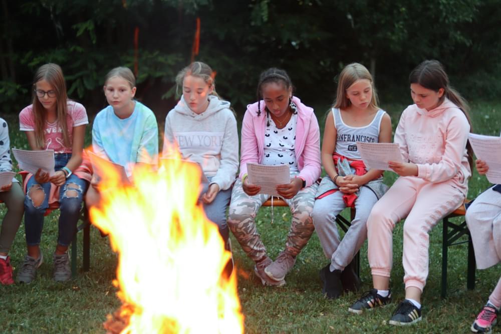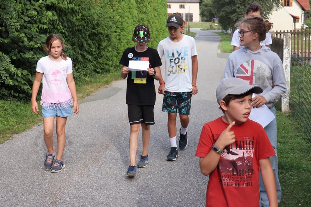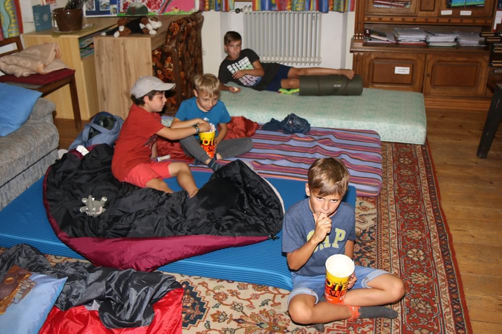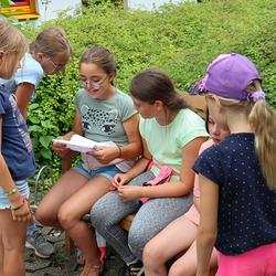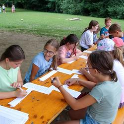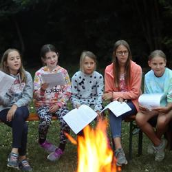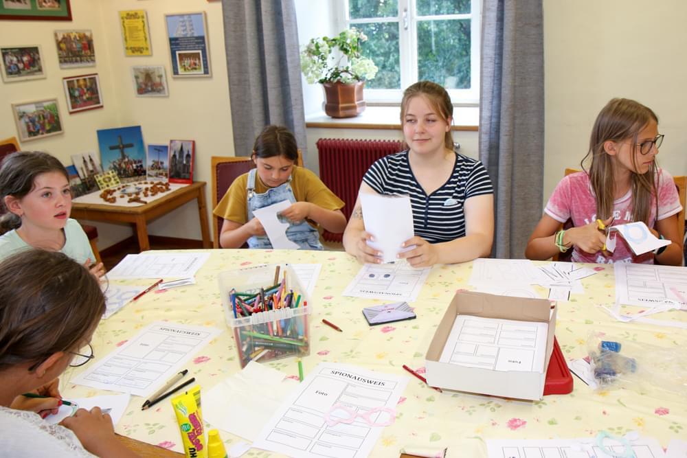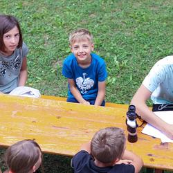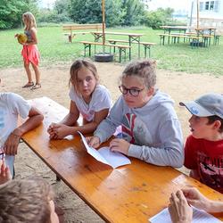 Die älteren Kinder haben im Zelt auf der Pfarrwiese geschlafen, die jüngeren Kinder waren im Pfarrhof untergebracht. Unsere Begleiter haben ein abwechslungsreiches Programm mit vielen lustigen Spielen für uns zusammengestellt. Am besten hat uns das „Spion-Spiel“ gefallen. Dabei haben wir einen Agentenausweis gemacht und mussten Aufgaben bei verschiedenen Stationen lösen. Natürlich darf das Geländespiel nicht fehlen, bei dem wir Rätsel gelöst und Geheimschriften entziffert haben. Sehr schön und lustig waren auch das Lagerfeuer und das gemeinsame Singen. Am zweiten Abend haben wir eine Party gefeiert. Wir haben zu den Liedern getanzt, was besonders viel Spaß gemacht hat.