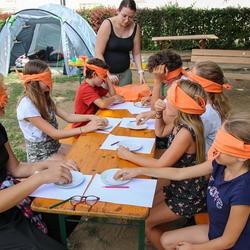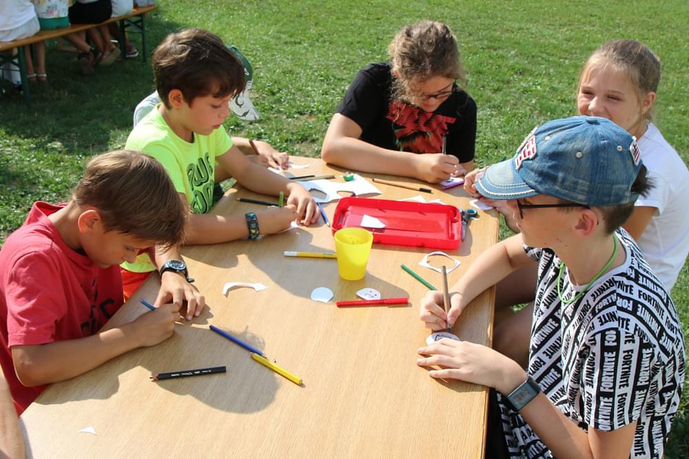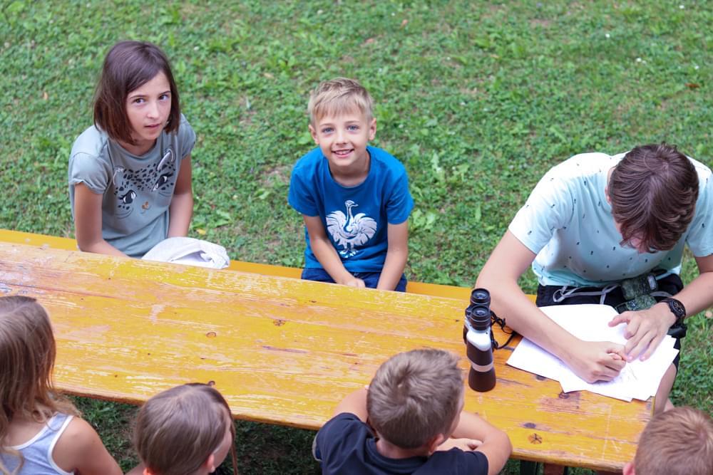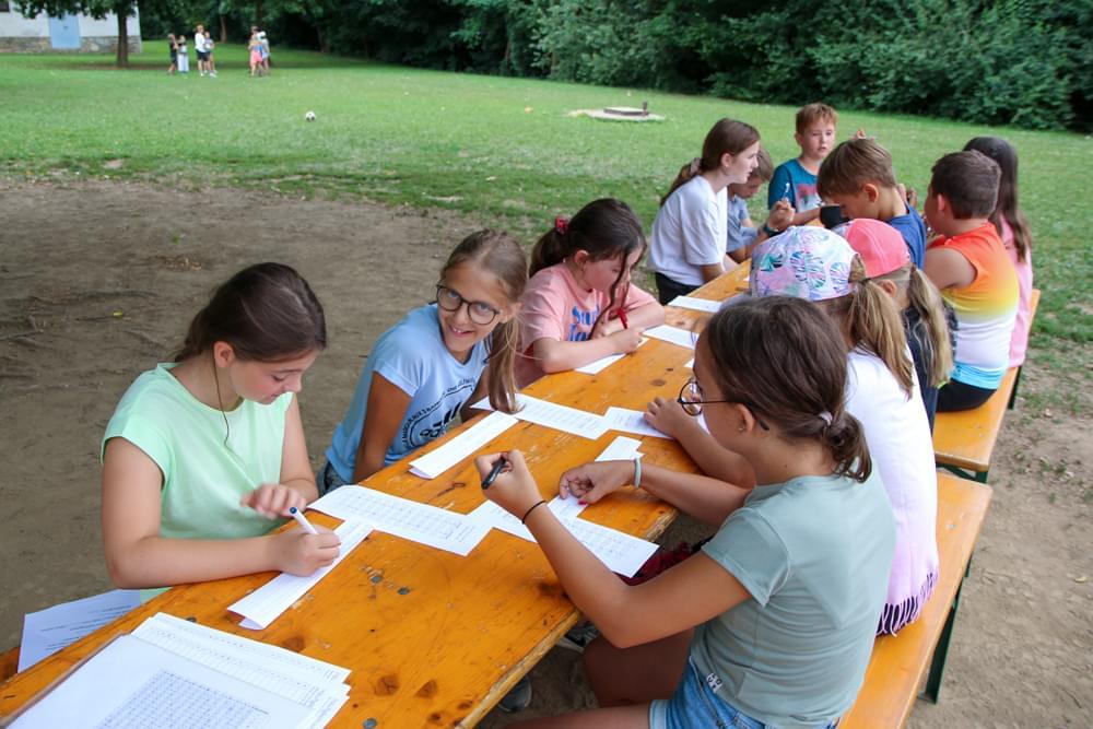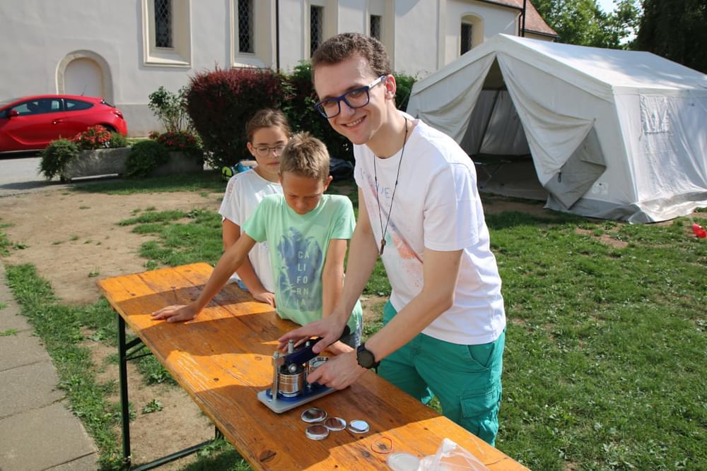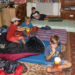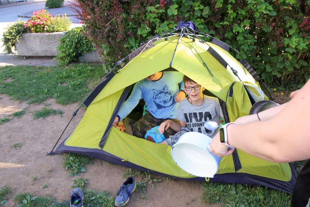 Die älteren Kinder haben im Zelt auf der Pfarrwiese geschlafen, die jüngeren Kinder waren im Pfarrhof untergebracht. Unsere Begleiter haben ein abwechslungsreiches Programm mit vielen lustigen Spielen für uns zusammengestellt. Am besten hat uns das „Spion-Spiel“ gefallen. Dabei haben wir einen Agentenausweis gemacht und mussten Aufgaben bei verschiedenen Stationen lösen. Natürlich darf das Geländespiel nicht fehlen, bei dem wir Rätsel gelöst und Geheimschriften entziffert haben. Sehr schön und lustig waren auch das Lagerfeuer und das gemeinsame Singen. Am zweiten Abend haben wir eine Party gefeiert. Wir haben zu den Liedern getanzt, was besonders viel Spaß gemacht hat.