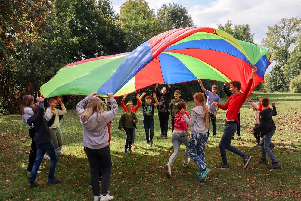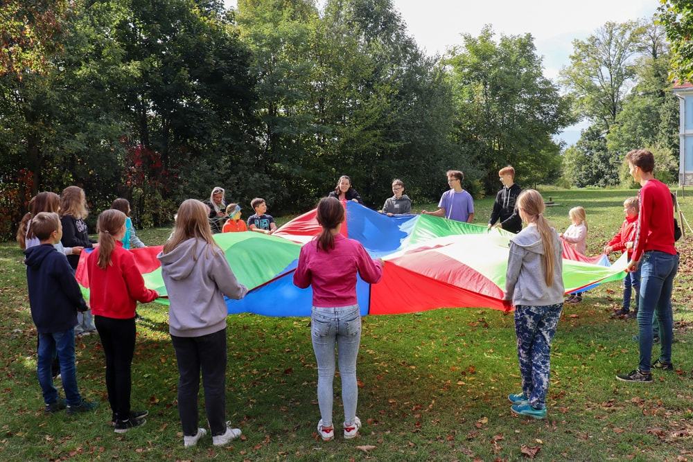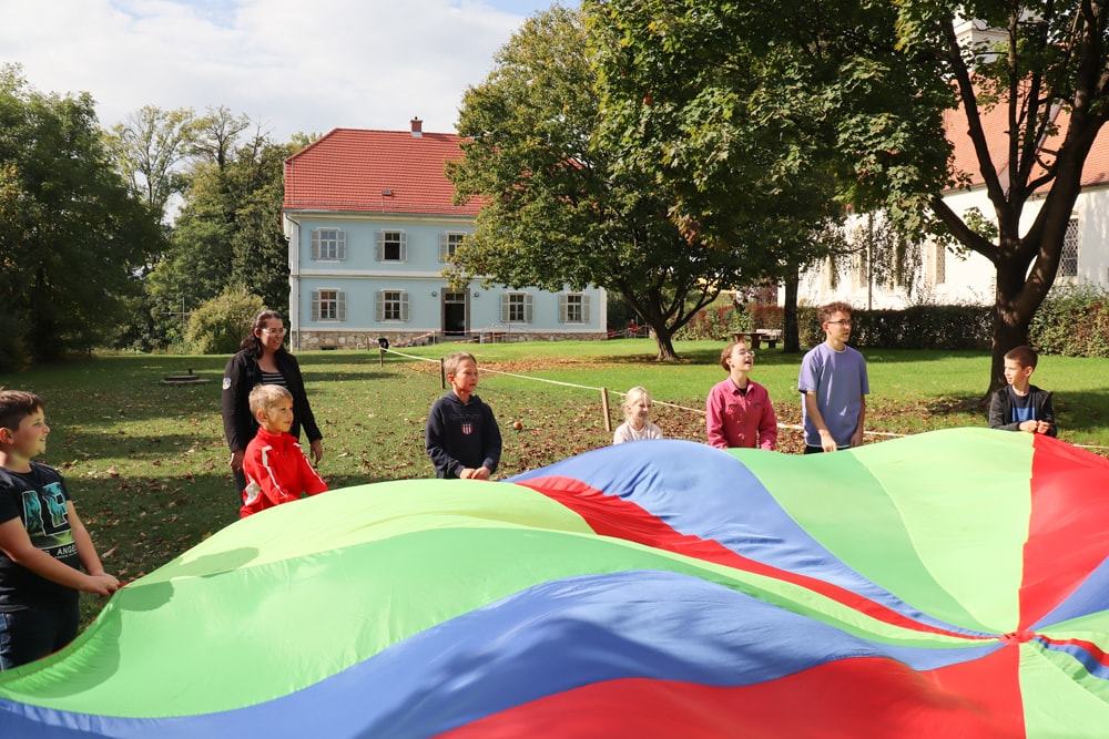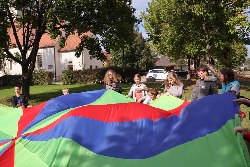 Mit dem Jungschar-Ruf wurde die erste Jungschar-Stunde des Schuljahres lautstark gestartet, Kennenlernspiele waren an der Reihe und auch das Schwungtuch wurde nach langer Zeit wieder einmal aus dem Kasten geholt. Zum ersten Mal durften wir auch unsere Pastoralreferentin Ines bei der Jungschar begrüßen.