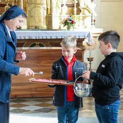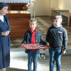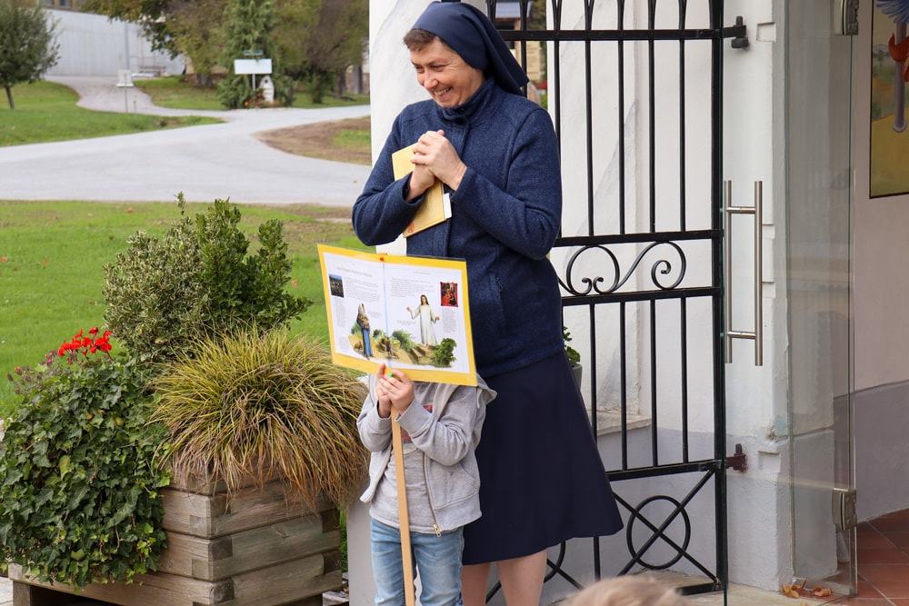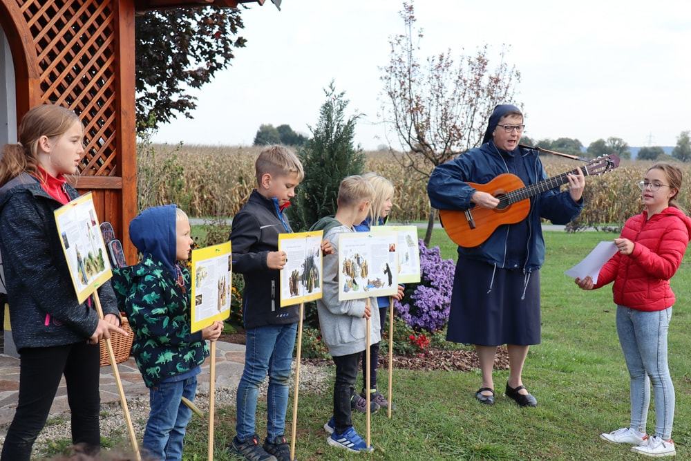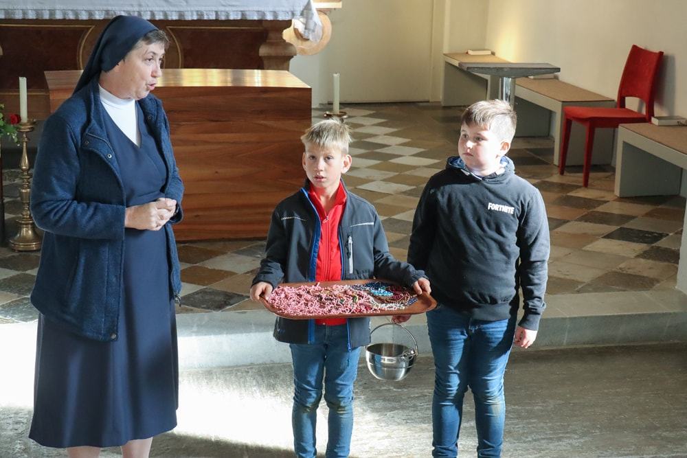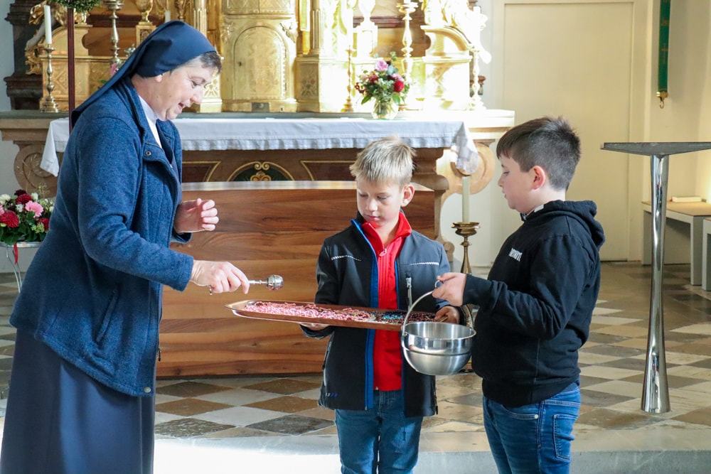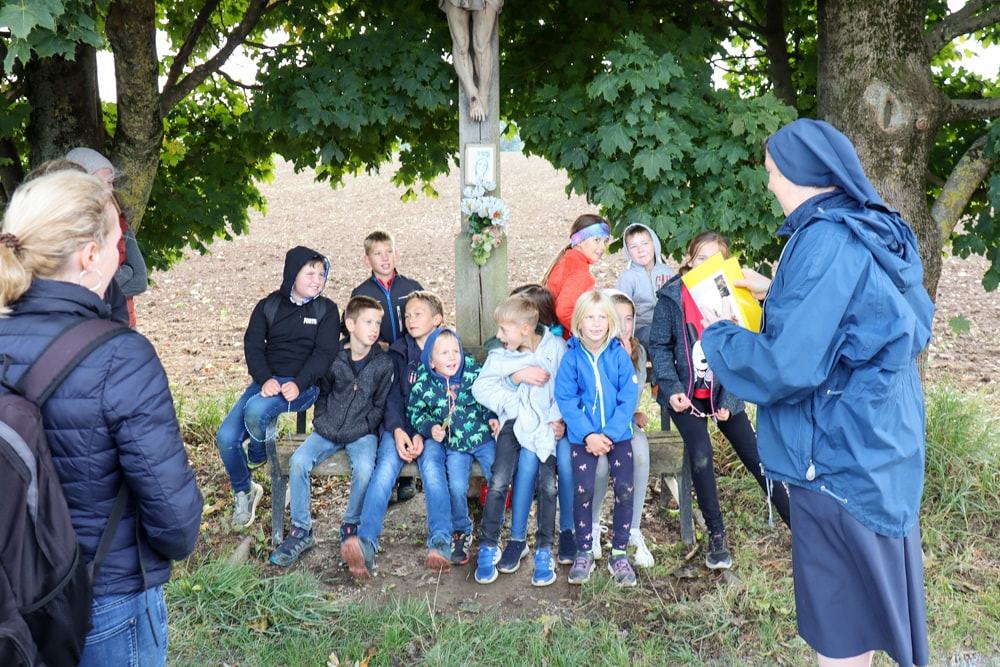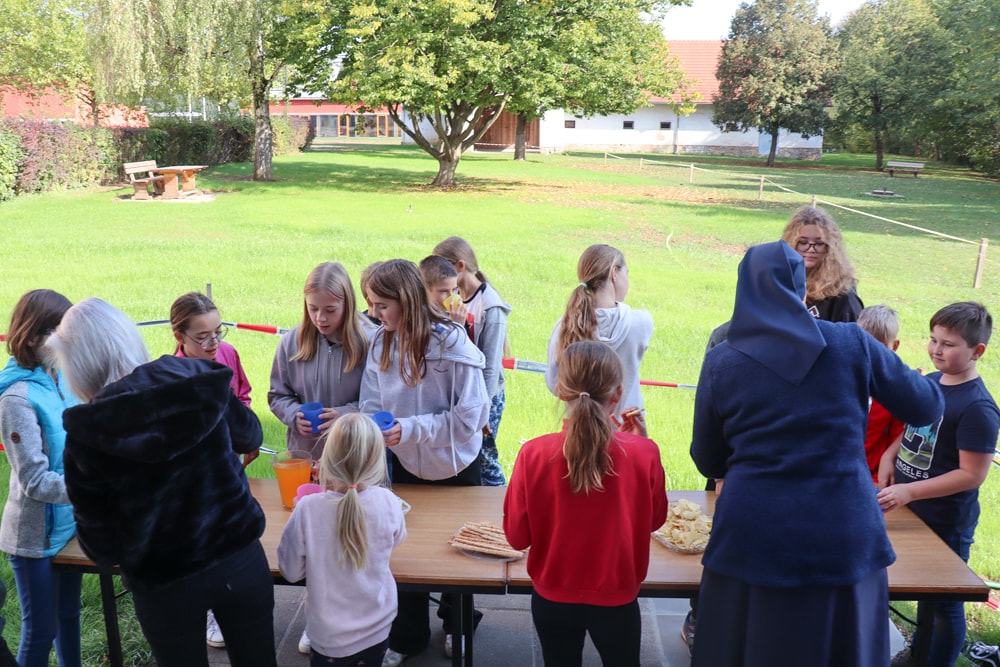 Anschließend wurden Kinder und Eltern in der Pfarrkirche auf Wallfahrt gesendet – Thema war heuer der freudenreiche Rosenkranz und so hatte jedes Kind auch einen eignen Rosenkranz dabei. Über den Oberberg weiter zur Dobl-Dorf-Kapelle und weiter zum Winkelhof führte uns unser Weg. Am Winkelhof durften wir dann zum Abschluss gemeinsam feiern.