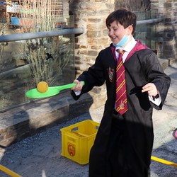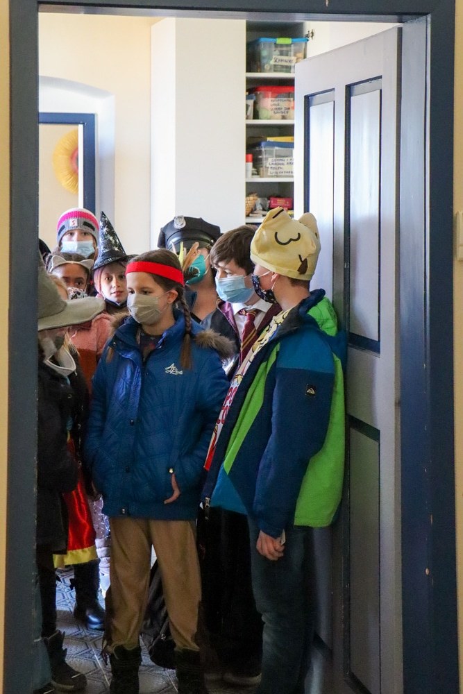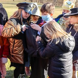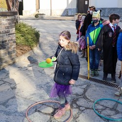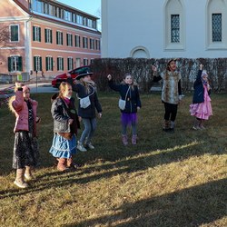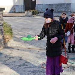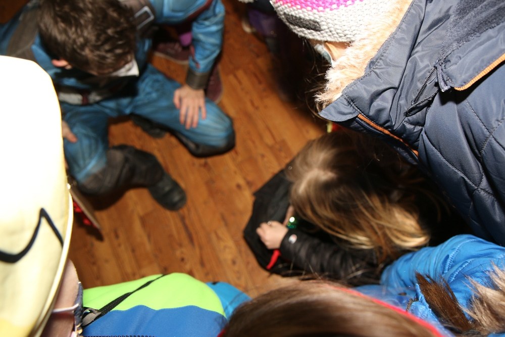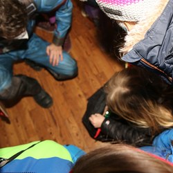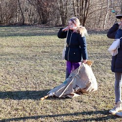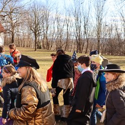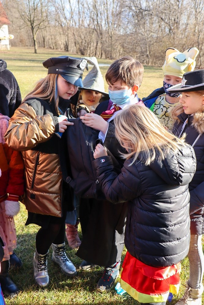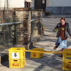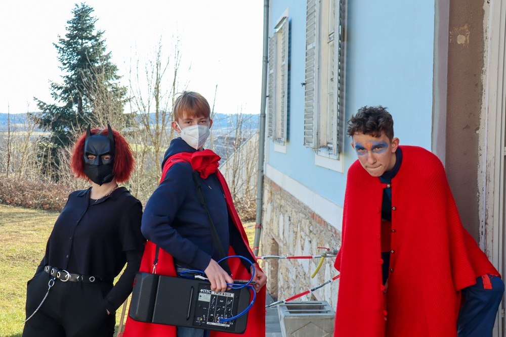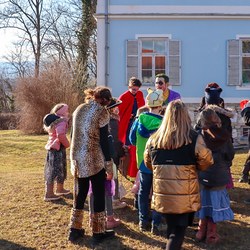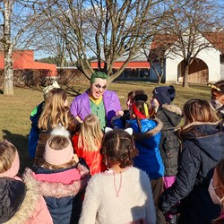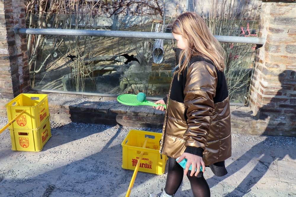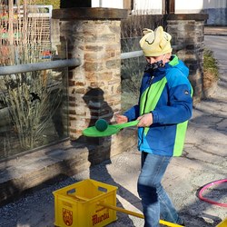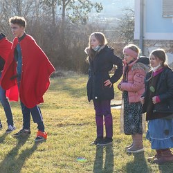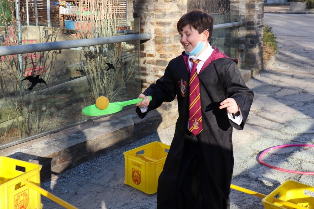 Gemeinsam verfolgten sie den Dieb rund um und in der Kirche, im Schlosshof, im Pfarrhof und schlussendlich auch noch auf der Pfarrwiese. Dabei mussten sie einige Hindernisse überwinden und Rätsel lösen.