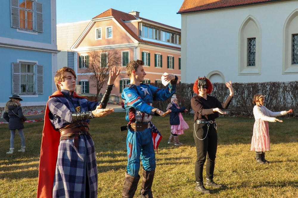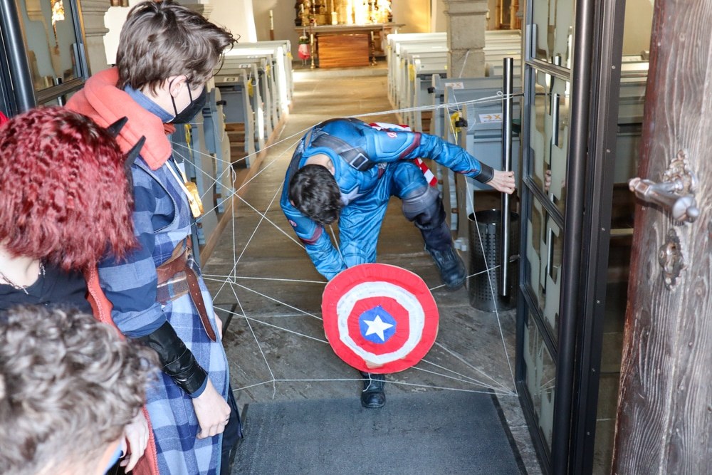 Nachdem gleich am Beginn die Fahne der Jungschar gestohlen wurde, kamen glücklicherweise einige Superhelden vorbei, welche die Kinder bei der Suche nach dem Dieb und der Fahne unterstützten. Mit dabei waren Superman, Spider-Man, Thor, Batwoman und Dr. Strange, wobei die Truppe von Captain America angeführt wurde.